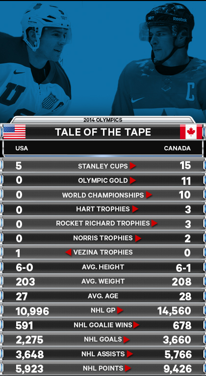 In addition to 2010, these teams also faced off for gold in 2002. In each of those events, Team USA didn’t drop a single game en route to the final, while Canada scuffled early before hitting its stride. In a way, both teams could be justified in thinking, “We’ve got ’em right where we want ’em.”