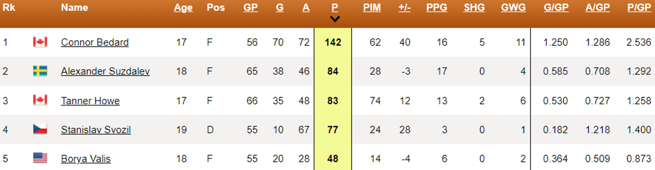 These are Bedard’s NHL projections. I take into consideration what I see at this stage of his development and forecast him at the NHL level. Some of the categories have room to move up or down as he evolves in the NHL. Prospects, no matter how elite, develop at their own pace once in the NHL.
