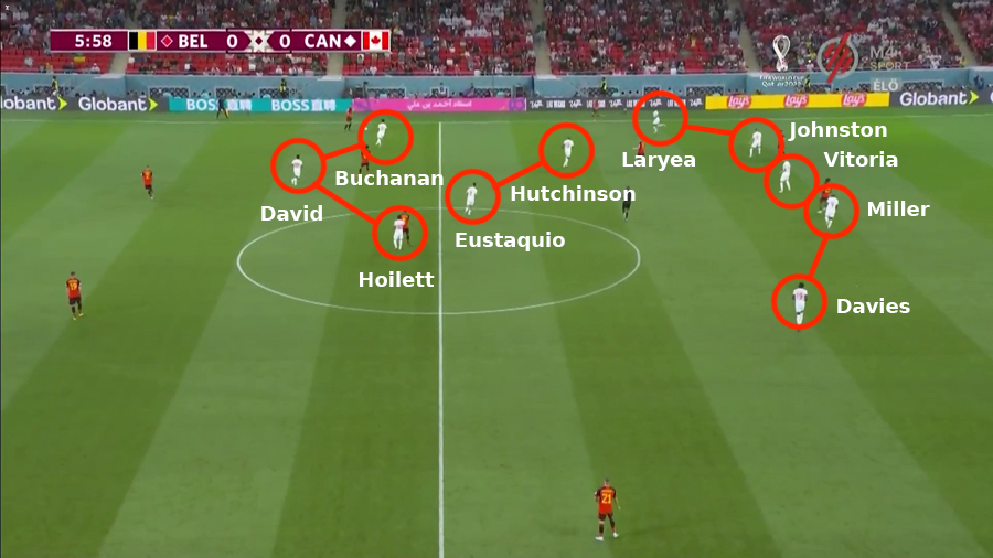 Eustaquio pushed up to cover the central areas to prevent De Bruyne and Youri Tielemans (or whoever else) dropping deeper to receive an outlet from the Belgian defence. That's why the 25-year-old led all Canadian players in defensive duels.