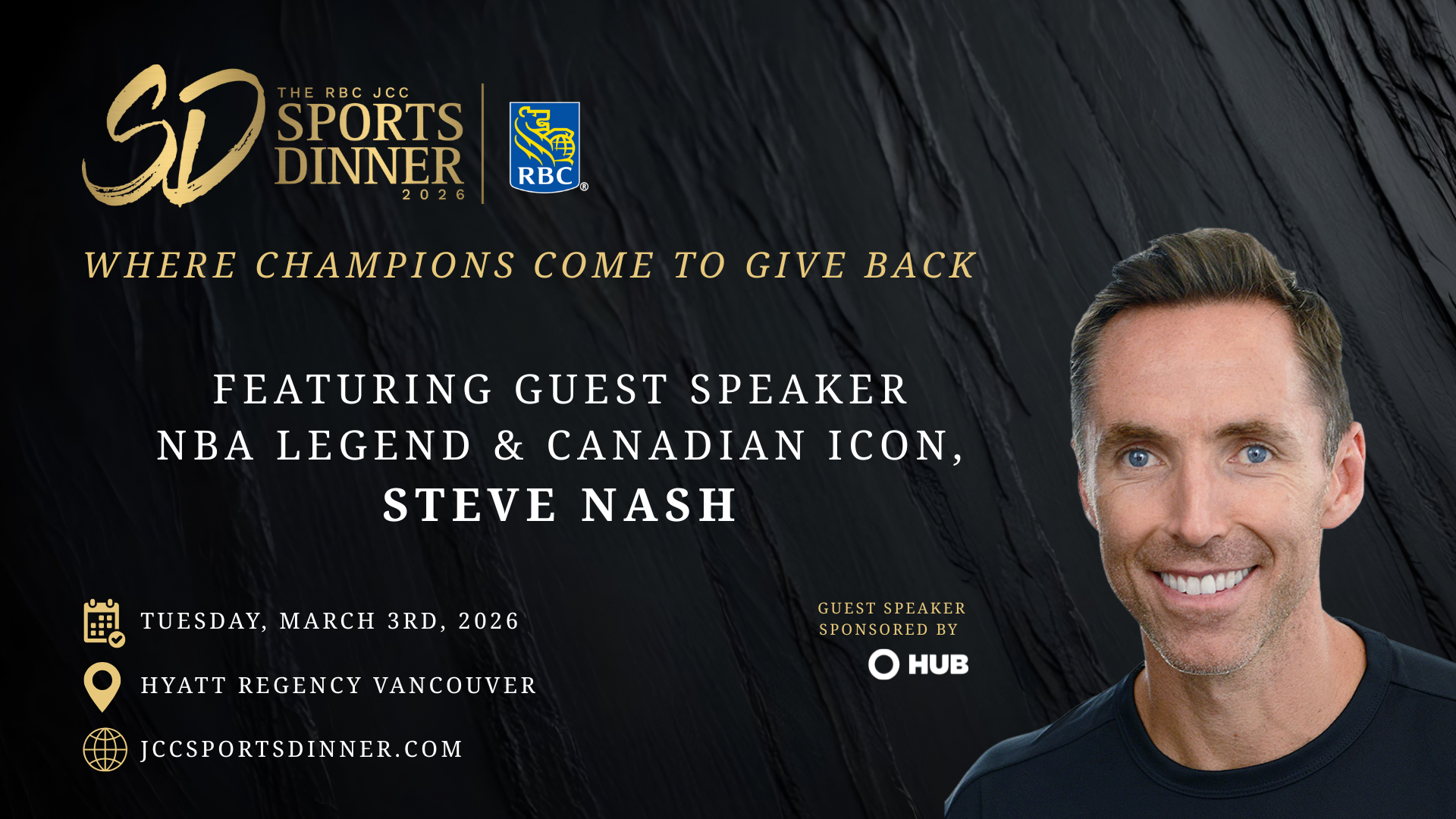 Sportsnet 650 is pleased to support the 33rd annual RBC JCC Sports Dinner, taking place Tuesday, March 3rd at the Hyatt Regency Vancouver featuring NBA Hall-of-Famer Steve Nash and the 2026 Jack Diamond Sports Personality of the Year Award recipient, Whitecaps legend Carl Valentine!