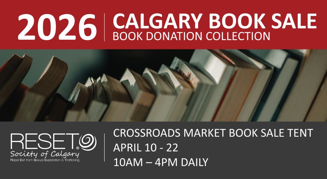 The Calgary Book Sale at Crossroads Market is back! With over 100,000 books, the Calgary Book Sale raises $120,000 – $140,000 annually which has helped support the EXploitation Intervention and Transition (EXIT) Program at RESET since 2003. The EXIT Program provides programming and support to women exiting sexual exploitation and sex trafficking. Our Book Sale is one of the largest book sales in Western Canada, and our dedicated team of 250+ volunteers, along with support from the community have allowed this event to be a success for the past 22 years.