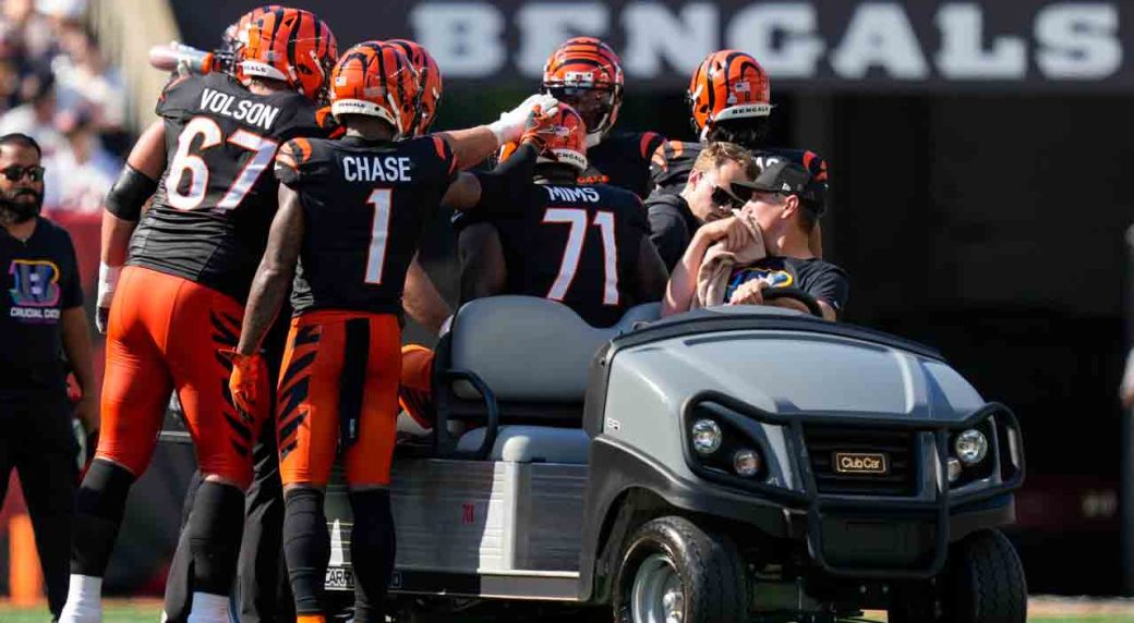 Mims, the Bengals’ first-round draft pick in 2024, was injured in the third quarter on a running play to Chase Brown against the Baltimore Ravens. He had to be helped up and into the cart.