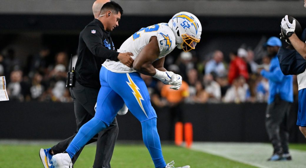 The Chargers announced he had been ruled out for the remainder of the game late in the second quarter. Mack was going to get imaging tests done at Allegiant Stadium, according to the ESPN broadcast.