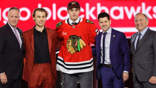 The Blackhawks had last year’s first-overall pick, forward Connor Bedard, announce their selection of Levshunov.
