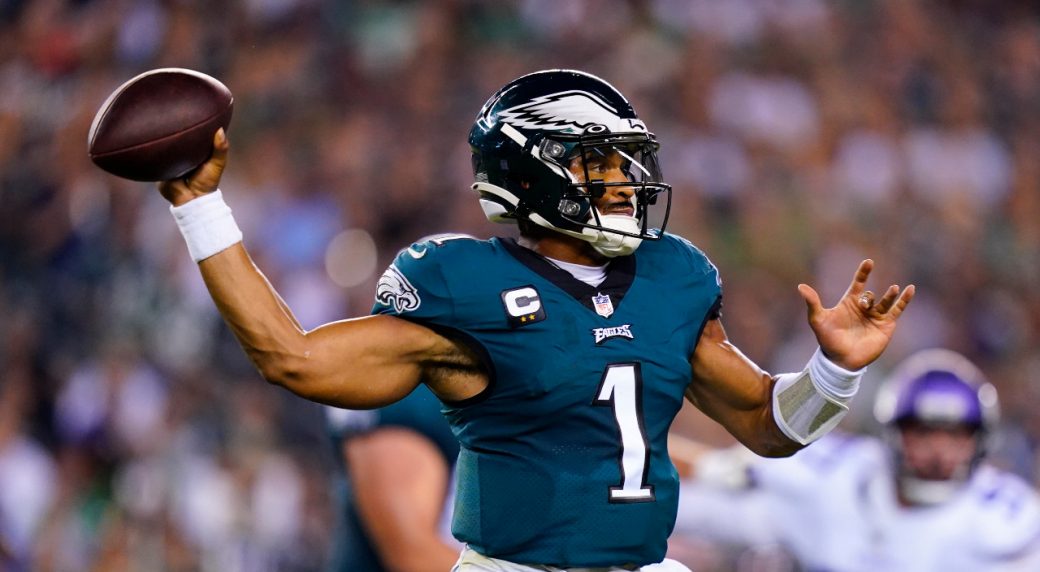 “Another outstanding performance. He threw some unbelievable balls. He made a lot of plays,” Eagles center Jason Kelce said. “This was a really great, well-rounded game for him.”