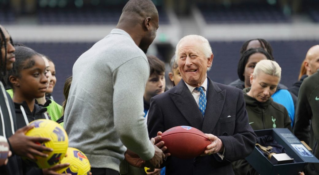 The 76-year-old monarch visited Tottenham Hotspur Stadium in north London as part of a community event sponsored by the Premier League club and the NFL on Wednesday.