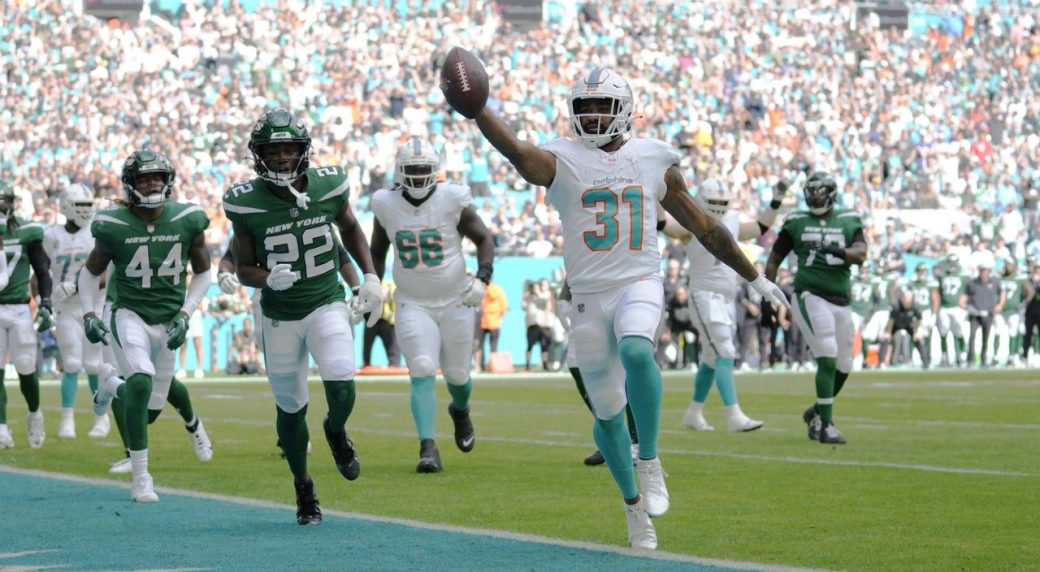 Waddle got behind Jets cornerback D.J. Reed for a 60-yard touchdown catch from Tagovailoa in the second quarter that put the Dolphins ahead 17-0. Mostert then gave the Dolphins a 24-point halftime lead with his second touchdown of the day, a 1-yard score in which he was again untouched.