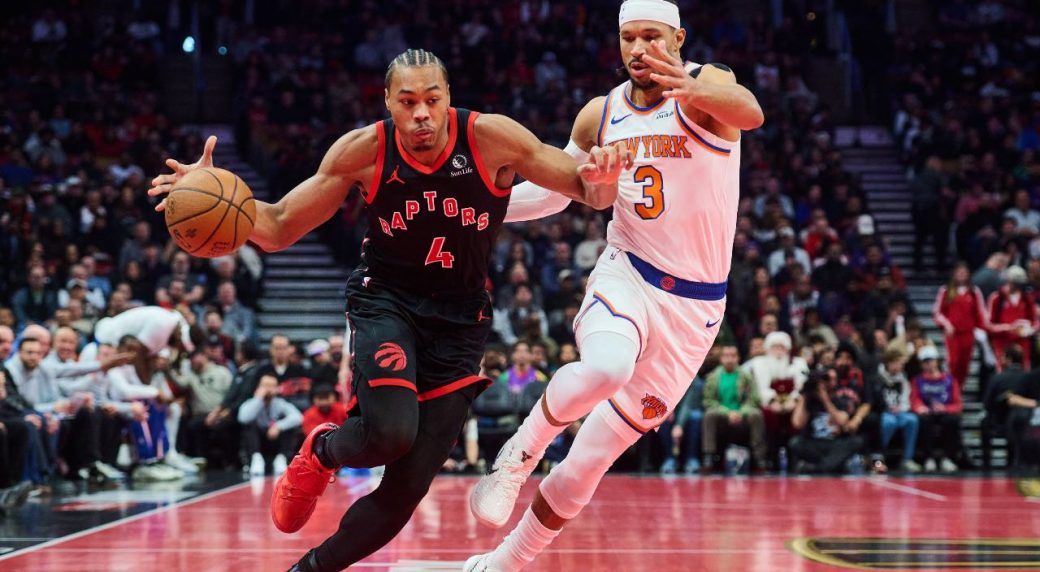 Knicks: New York’s smothering defence harassed Toronto from the second quarter onward, taking advantage of the Raptors’ lack of depth. The Knicks D was particularly hard on Toronto’s reserves with only Ja’Kobe Walter (13 points) and Collin Murray-Boyles (four points) scoring off the bench in the first three quarters.