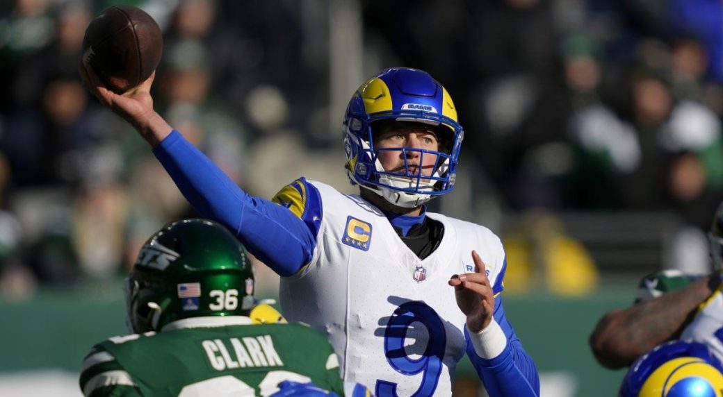 Tony Adams intercepted Stafford on the Rams’ next drive, ending the Rams quarterback’s career-best streak of five games without a turnover. But the Jets turned the ball over on downs when interim coach Jeff Ulbrich opted to go for it on fourth-and-1 but Breece Hall was stopped for no gain, giving Los Angeles the ball at New York’s 33.