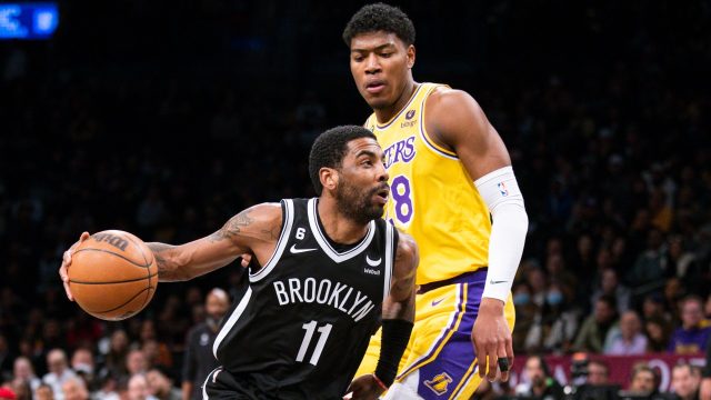 Kyrie Irving had 26 points, seven rebounds and six assists to lead the Brooklyn Nets to a 121-104 victory Monday night over the Los Angeles Lakers, who played without LeBron James and Anthony Davis.