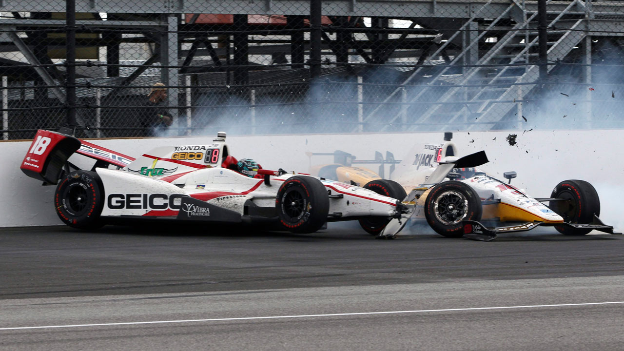 INDIANAPOLIS — IndyCar driver James Davison climbed out of his car after crashing hard during Indianapolis 500 practice.