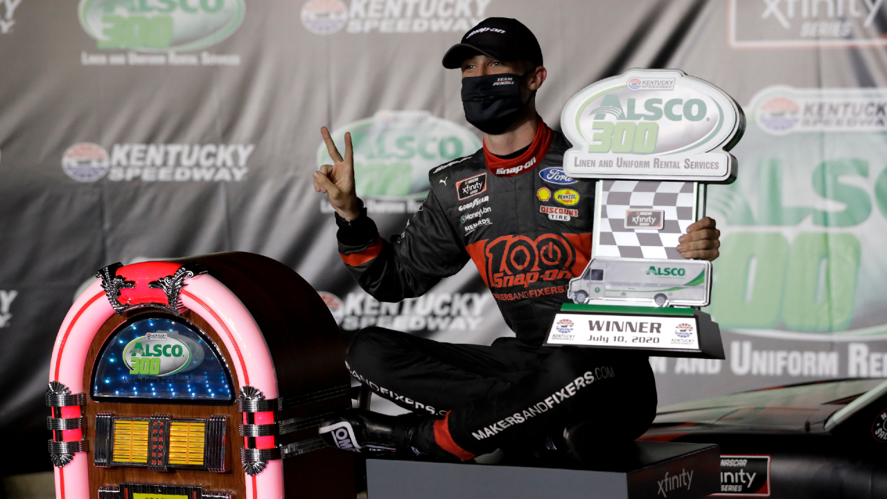 A night after racing to his first career oval victory in an overtime finish, the Team Penske driver was even stronger in the No. 22 Ford Mustang in the 300-mile capper.