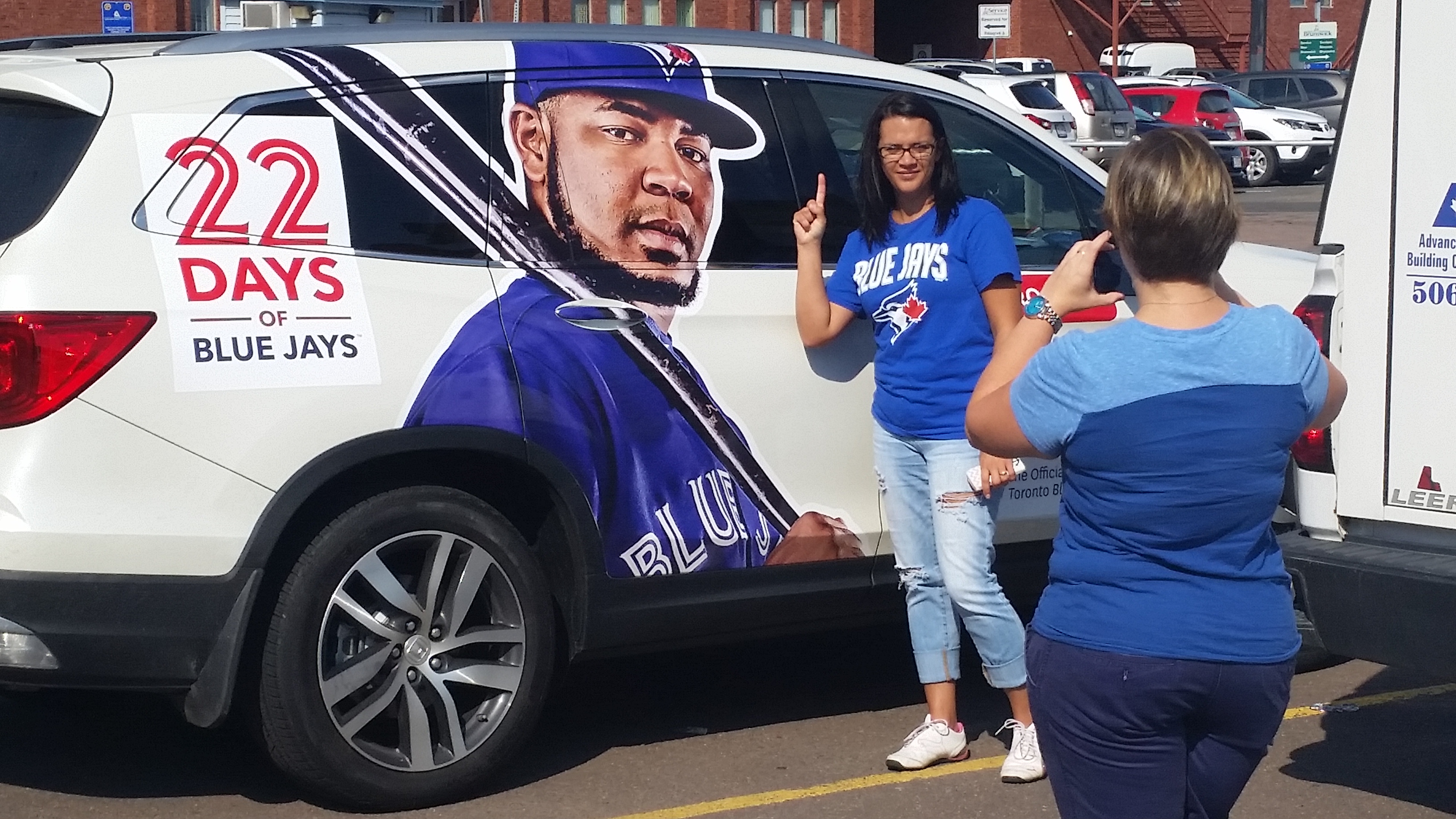 Yesterday the Rogers fan scouts stayed in the family to find some Blue Jays love. We went to the Rogers call centre to bring some energy to the employees who work so hard there. When we arrived, fans were already ready to see our decked out Honda Pilot!