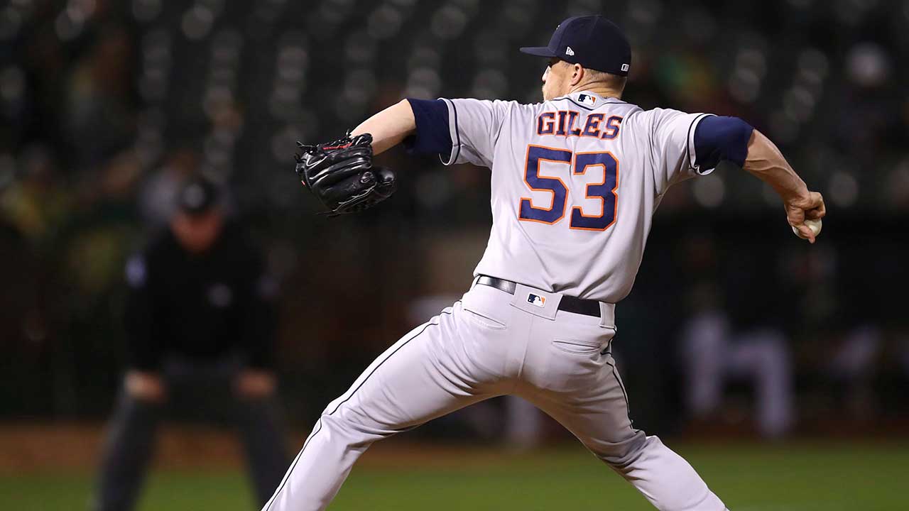 The Astros were up by four to start the ninth inning against Oakland on Tuesday night when Giles took over and gave up three straight singles, which cut the lead to 4-1.