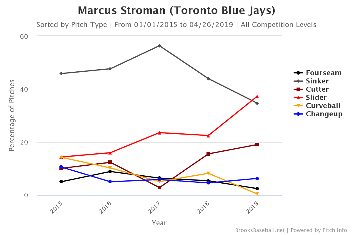 Stroman’s been spinning the ball like crazy this season, coming into Friday’s outing using his slider 37 per cent of the time, up from 22 per cent last season, and 24 per cent the season prior.