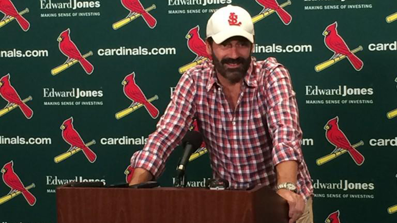 ST. LOUIS — Jon Hamm joked that the bobble head the St. Louis Cardinals honoured him with was "probably repurposed" from a Matt Carpenter model.