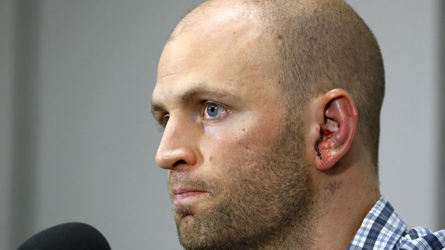 Happ suffered fracture in the skull behind his left ear, needed eight stitches to close the gash, and appeared to be free of any post-concussion issues. In fact, the worst damage may very well be to his right knee, which twisted under his weight as he crumpled to the ground and was stiff and unstable.