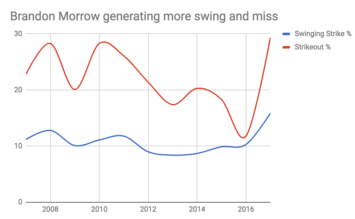 Morrow hasn’t started a game since May of 2015, but he sure looked like an elite reliever last year. His fastball averaged 97.7 m.p.h., a career high, and he touched 100 m.p.h. on occasion. To complement that velocity, Morrow has relied extensively on a hard cutter since moving back to the bullpen and the combination has proved successful.