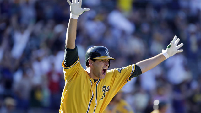 Moments later, Freiman received a celebratory whipped cream pie in the face following his first career game-ending hit — and Oakland’s fifth of 2013 after compiling a major league-best 14 walk-off wins last year. He had entered the game in the top of the 16th.