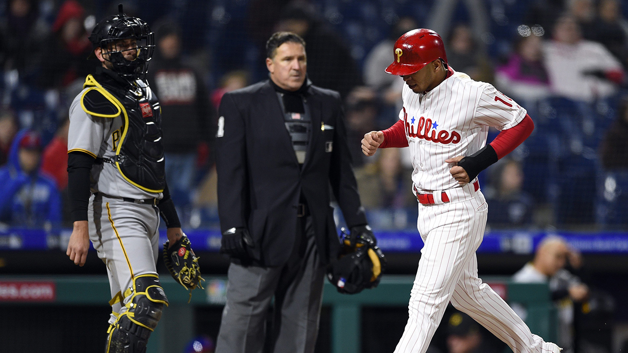 Philadelphia tied it in the bottom half when Santana scored on Hoskins’ fielder’s choice grounder to third. Santana reached third on Herrera’s single to right, and Herrera tied a career high on the hit by reaching base safely in 21 straight games.