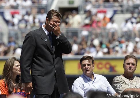 Trevor Hoffman, baseball’s career saves leader who had to keep his composure in the ninth inning so many times during his career, wiped away tears.