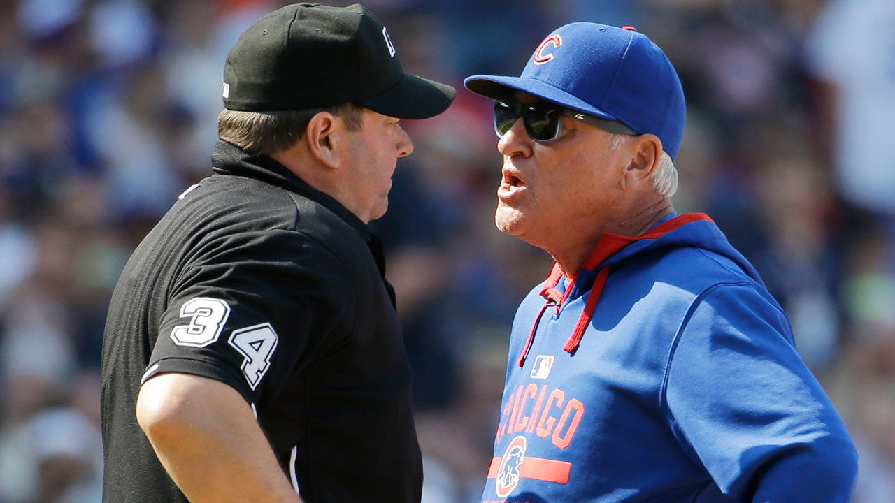 Reliever Brian Schlitter had just given up a three-run homer to Wil Myers that put the Padres ahead 5-4. Maddon appeared to be upset with a 0-2 pitch that was called a ball on a checked swing.