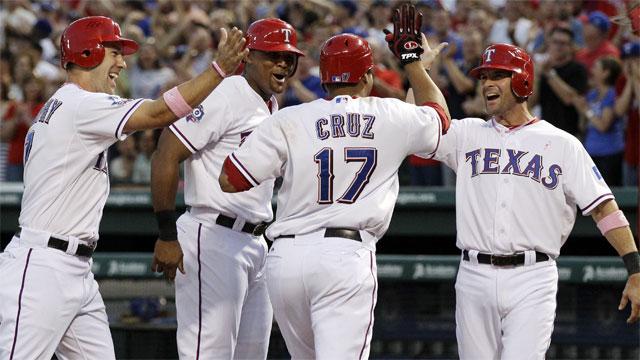 Watch as the Rangers’ Nelson Cruz drives in 8 runs in Texas’ 14-3 rout of the Toronto Blue Jays.