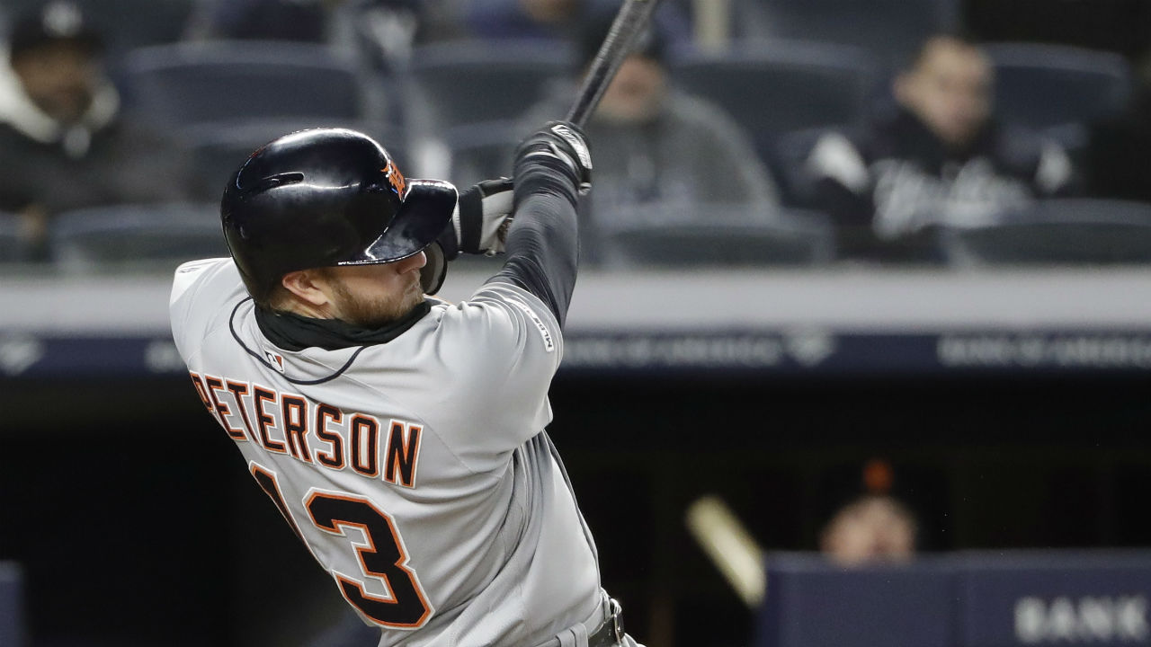NEW YORK — Dustin Peterson laced a tiebreaking double off Aroldis Chapman in the ninth inning for his first major league hit, and the Detroit Tigers beat the New York Yankees 3-1 on a nippy Tuesday night.