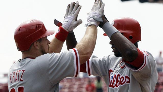 The Phillies opened the second inning with consecutive singles by Ryan Howard, John Mayberry Jr., and Domonic Brown before Kratz hit a 2-2 pitch into the left-field seats for a three-run homer, his ninth shot of the season.