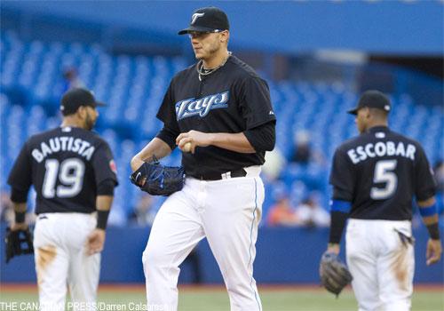 He kept that run going by allowing just five hits and a walk in seven innings, with the Blue Jays threatening a big inning only once, in the first when they put runners on the corners with none out. But Yunel Escobar was thrown out at home trying to score on Bautista’s grounder to first and Adam Lind followed by hitting into a double play.