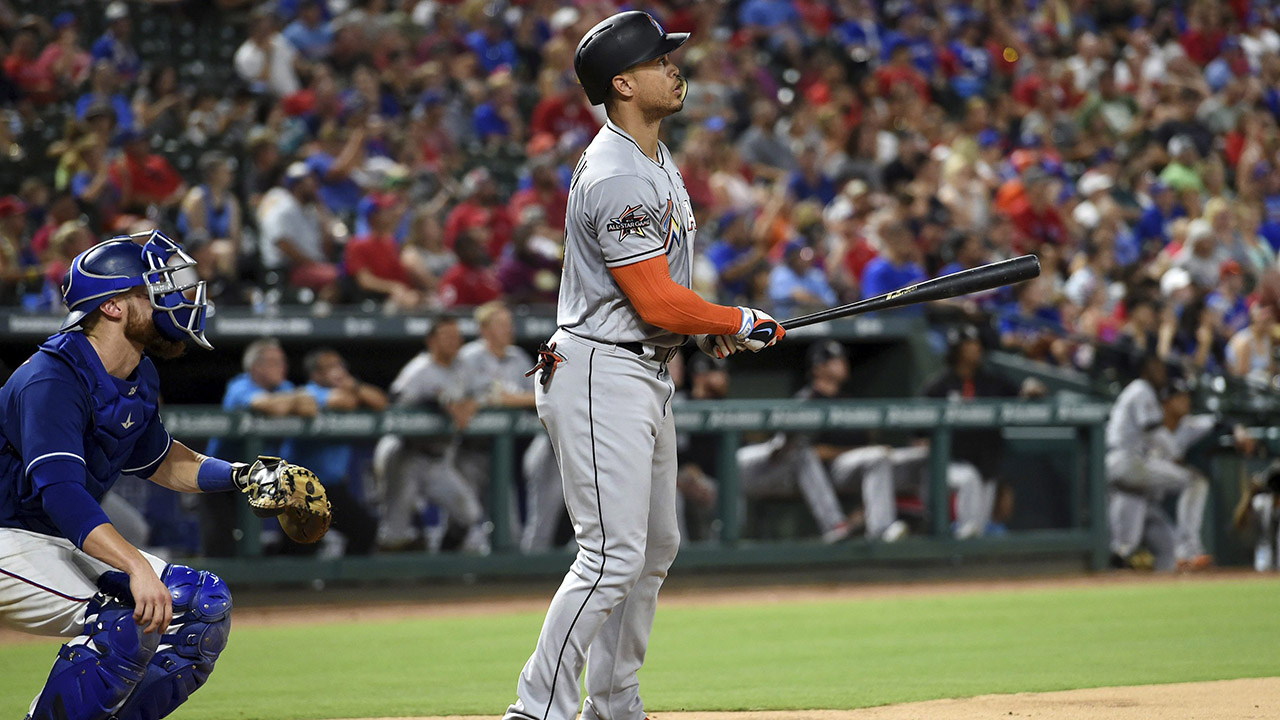This time, the Marlins were taking it to the Rangers. Leading 13-5 after seven innings, Stanton stepped into the box against Grilli in the top of the eighth inning.