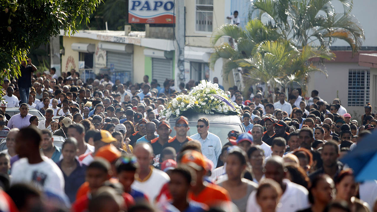 The slugger’s father, Francisco Taveras, thanked the crowd for coming and teared up as he spoke at the cemetery.