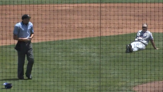 Brown was ejected from a game against the Norfolk Tides Sunday and proceeded to protest the ejection in an unusual way – by simply sitting down in the infield and crossing his legs.