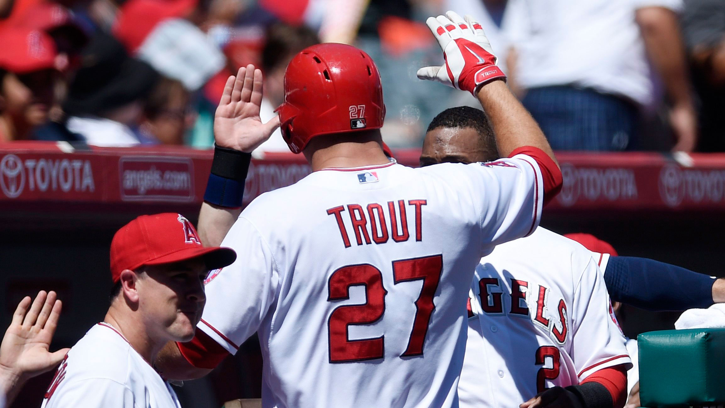Trout also walked twice in three plate appearances, improving his on-base percentage to .636 in the spring.