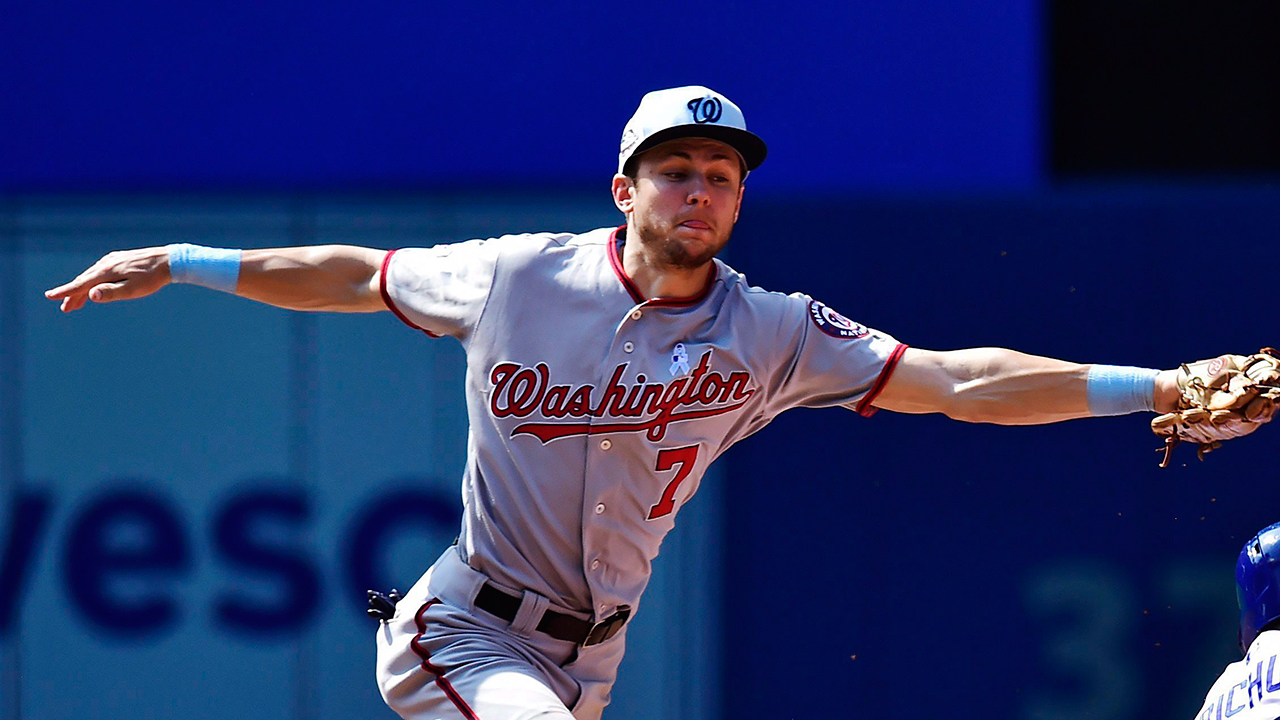 Washington loaded the bases with no outs in the bottom half and took full advantage, batting around and scoring four runs. Eaton contributed a two-run single, Rendon hit a sacrifice fly and Bryce Harper chased starter David Hess with an RBI double.