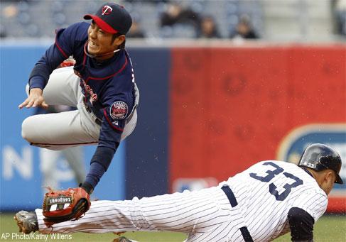 Nishioka had to be helped off the field, barely putting weight on the leg, in the seventh inning. Swisher slid well to the left of the bag as Nishioka tried to turn the double play.