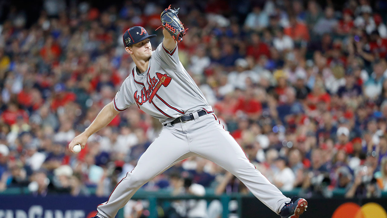 Mike Soroka throws during the sixth inning of the MLB All-Star Game. (AP Photo/John Minchillo)