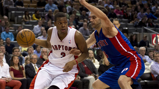 Detroit sputtered early in the third and the Raps took advantage. Gay drained a three before Valanciunas added a deuce to give Toronto a 60-54 edge. The big Lithuanian was battling fellow rookie Andre Drummond all night, but got the best of the Pistons centre with a putback to stretch the lead 70-59 midway through the third.