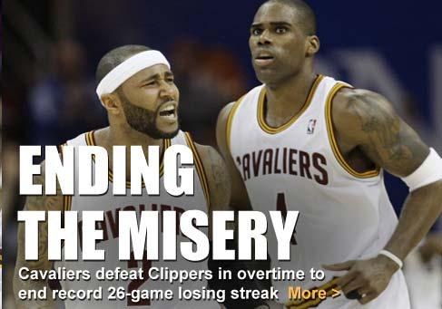 Nearly two months after it started innocently, the Cavaliers stopped their NBA-record skid at 26 games Friday night with a 126-119 overtime win against the Los Angeles Clippers, who did all they could to extend Cleveland’s winter misery.