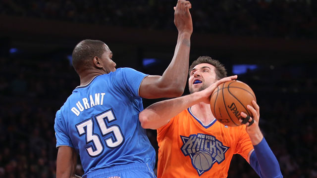 Anthony averaged 28.7 points last season, ending Durant’s three-year reign as scoring champion, but Durant has moved right back to the top this season with 28.1 to Anthony’s 26.3.
