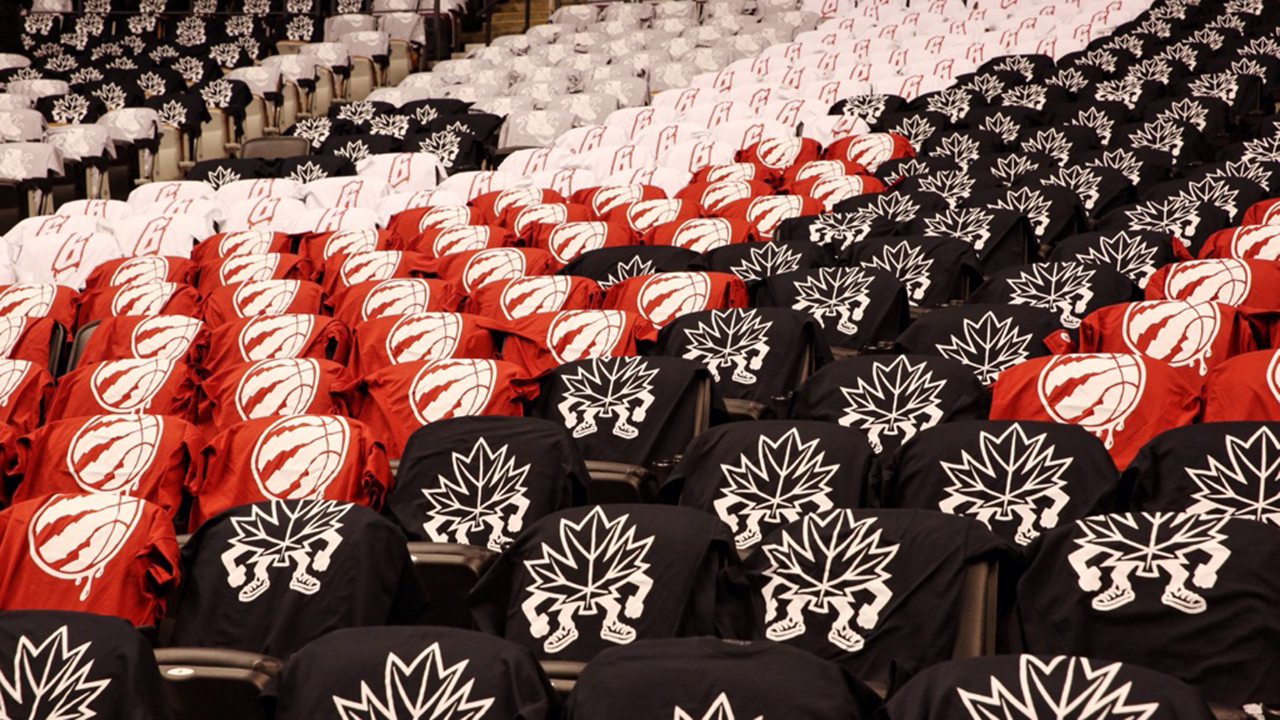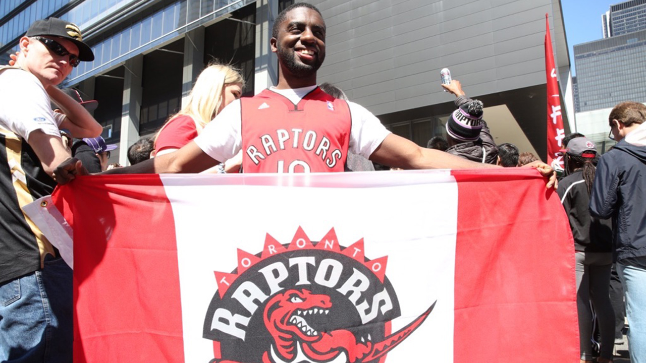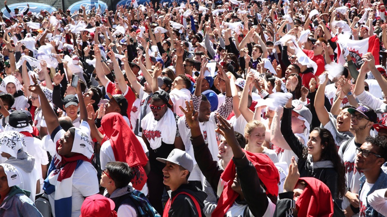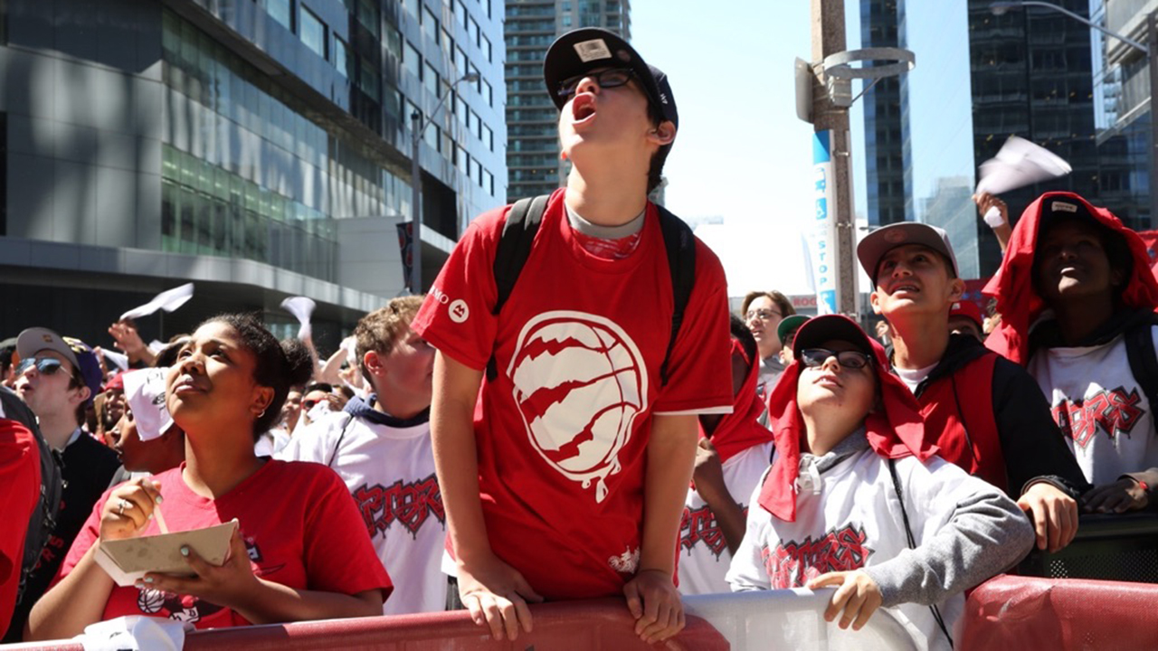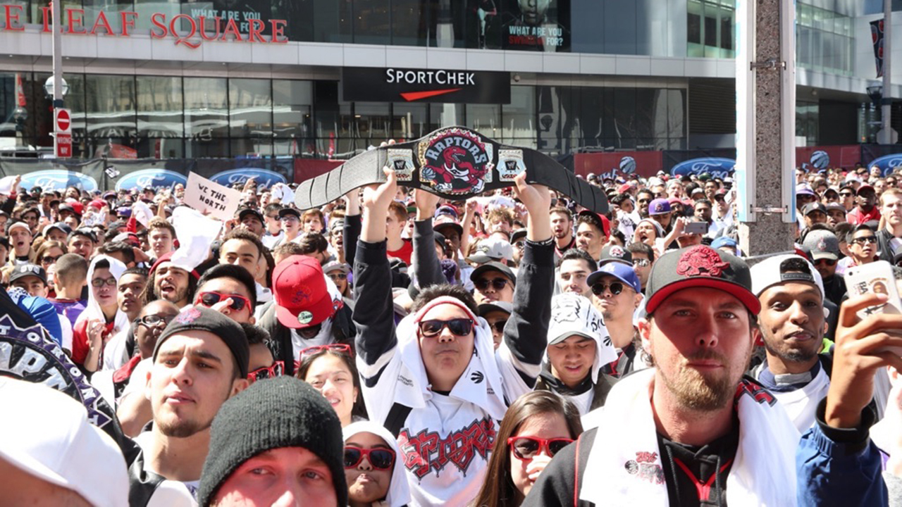 Raptors fans outside the ACC at Jurassic Park.