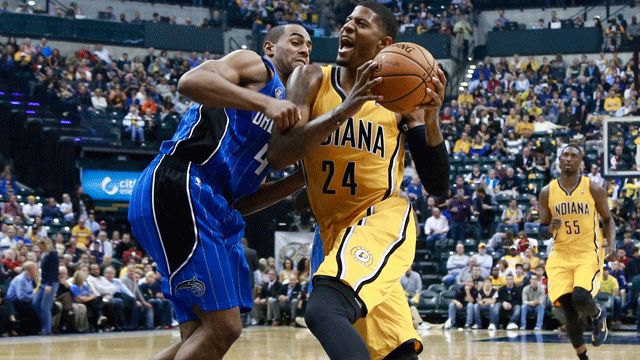 Ronnie Price’s 12-foot jumper with 6.1 seconds left in the third trimmed the Pacers’ lead to 65-64. But Orlando was whistled for delay of game, David West made the free throw and George hit the 3 to close out the third.