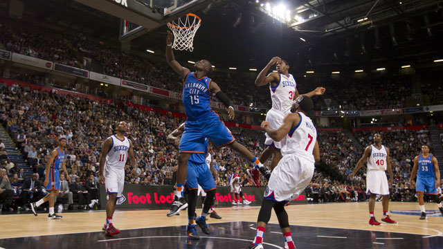 Like the Thunder, Philadelphia has been on a week-long tour of Europe as the NBA looks to promote the sport around the world, and beat Bilbao Basket 106-104 in Spain on Sunday.