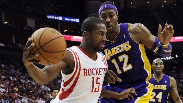Houston cut the lead to six points with a 3-pointer by Delfino early in the second quarter before the Lakers used a 10-3 run to extend their lead to 46-33 about five minutes before halftime. That run was capped by a dunk by Howard followed by a 3-pointer from Jamison.