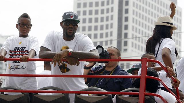 "It’s good being around other people who support LeBron," said Doug Mead of Toledo, Ohio, who came to the parade with his family. "They really don’t like him in Ohio. They celebrate when he loses."