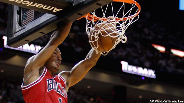 Flash forward eight months, and Rose is handed the MVP trophy before an Eastern Conference semifinal game against Atlanta—an 86–73 win in which D-Rose scored 25 points, and added 10 assists, six boards and two blocks. At 22, the Chicago native is the youngest player in NBA history to win the award, after leading the Bulls to a league-best 62 wins.