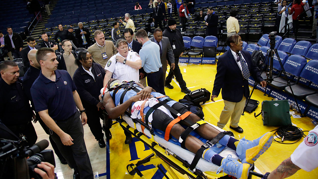 Faried raised his right arm for a thumbs-up to fans who stuck around after Golden State’s 111-108 overtime victory. He left the court approximately 10 minutes after the game ended and after being attended to by medical personnel while on the ground at the end of Denver’s bench. A team spokesman said that Nuggets general manager Tim Connelly accompanied Faried to the hospital.
