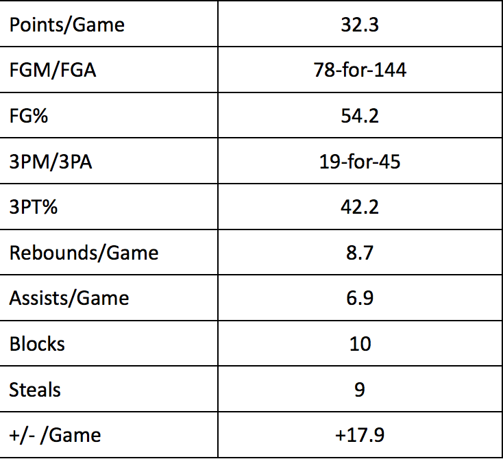 • Dating back to 2016, James and the Cavaliers have now won seven straight playoff games versus the Toronto Raptors. Here are his stats during that span: