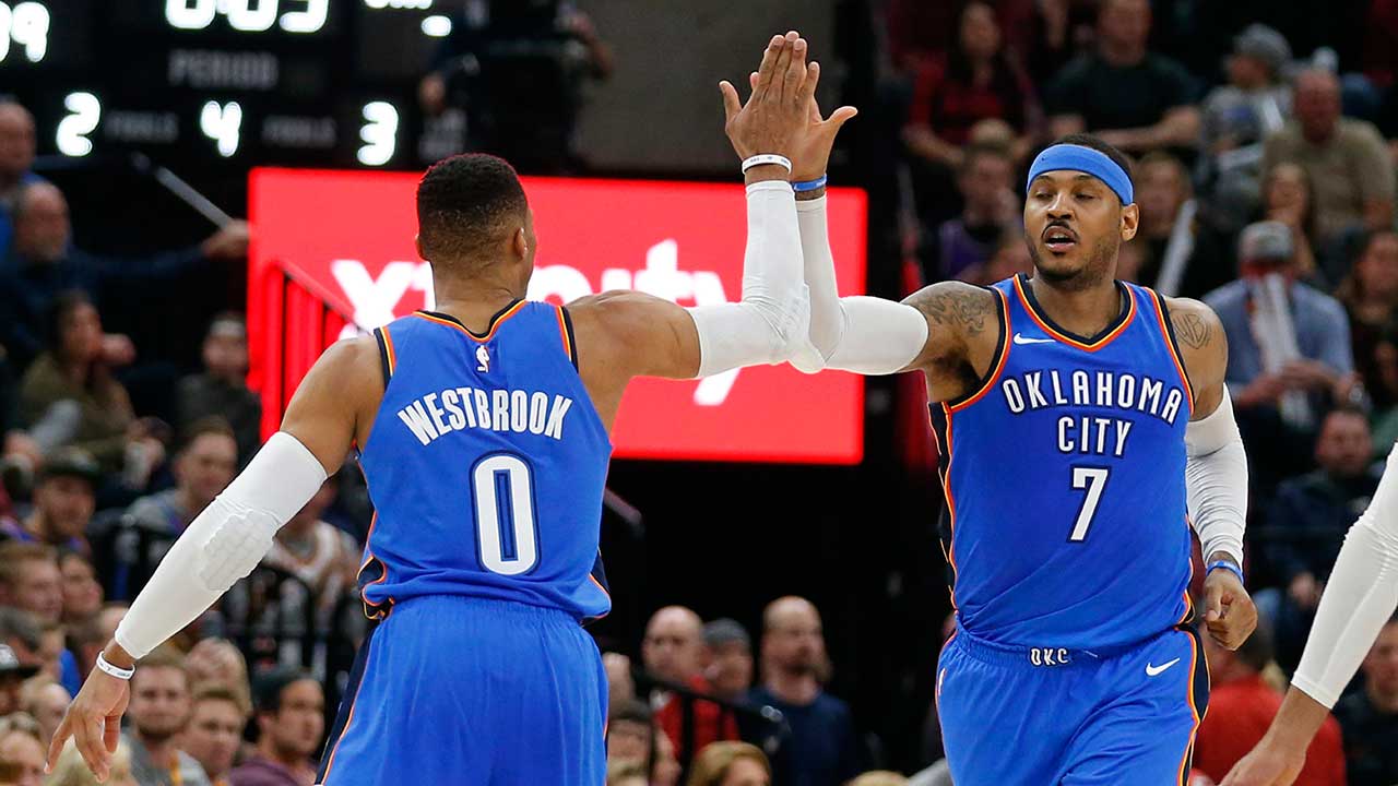 The Thunder entered the night having won 9 of 12 as Westbrook, George and Anthony have gotten more comfortable playing together.
