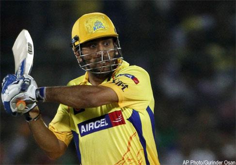 Dhoni smashed four sixes and five fours, adding 96 for the third wicket with Subramaniam Badrinath (55) to help Chennai score a formidable 176-4.